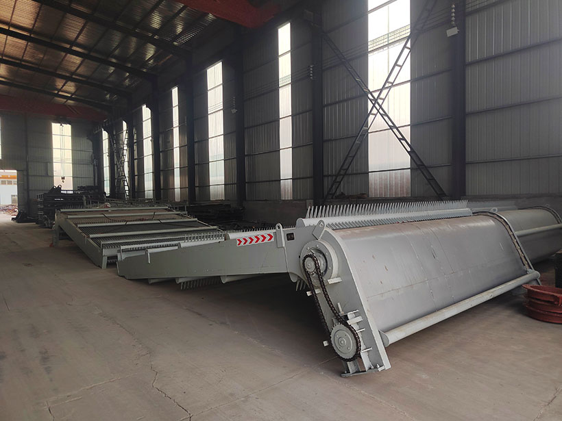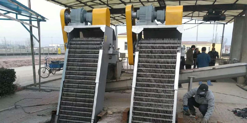 清除附着在拦污栅上杂物(一般称污物)的机械设备。在污物较多的水库或河道上,为保证水电站或泵站得以安全、正常地运行,常需设置清污机,以便在不?;筒环趴账獾奶跫陆星逦?。 回转齿耙式清污机一般与拦污栅做成整体,动力装置分为液压马达驱动和电动机驱动,回转齿耙式清污机的清污刮板传动装置宜采用回转式输送链。